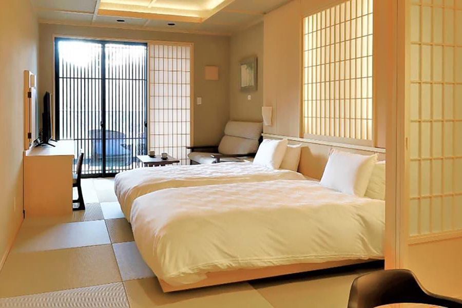 箱根湯本駅から徒歩約10分。「ホテルマイユクール祥月」は、女性を想った細やかな気配りが人気の宿です。ヘアアイロンやくるくるドライヤー、6種類から固さを選べるまくら(先着順)などを無料で貸し出しているほか、大浴場の脱衣所にはノンカフェインのルイボスティーを用意。手術の跡がある方や怪我をしている方のための「湯着」までそろいます。美肌の効能があり湯冷めしにくい温泉も女性に嬉しいポイント。男女入れ替え制のため、備え付けのアメニティや露天風呂からの景色が朝晩で変わり、新鮮な気持ちで入浴を楽しめます。