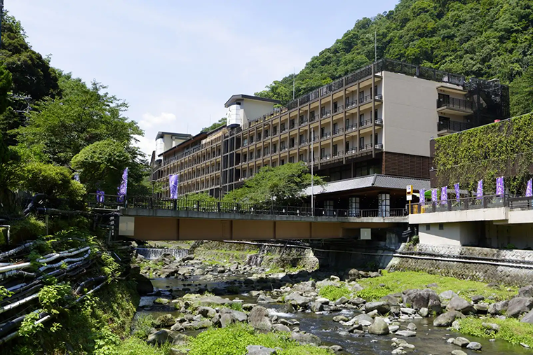 箱根湯本温泉に佇むホテル。温泉はお肌と身体に優しいアルカリ性単純泉をお楽しみいただけます。お部屋も温泉露天風呂付きのお部屋や和室・和洋室など様々なタイプが完備され、幅広い世代に人気の宿です。
