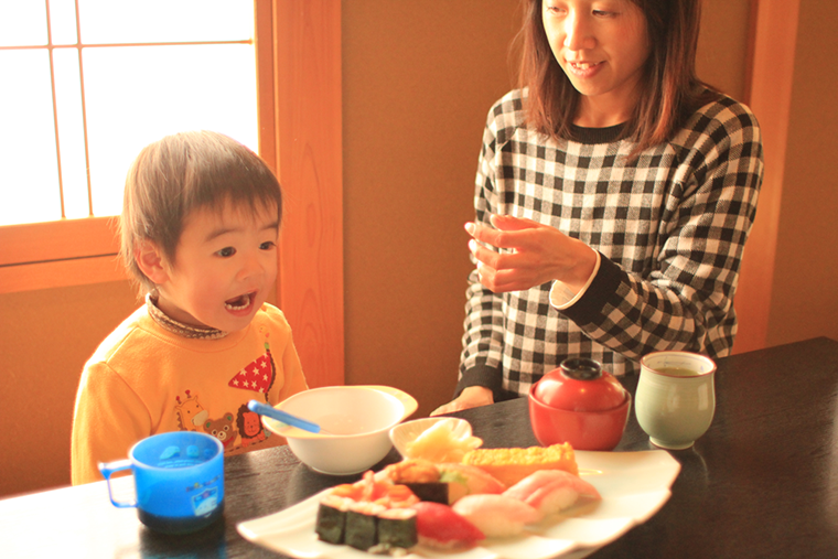 「玉子」(330円/税込)や「納豆巻き」「かっぱ巻き」(各3本 990円/税込)など、お子さまが大好きな定番メニューも充実。1貫から注文できるため、食べられる分だけ注文できるのも嬉しいポイントです。もちろん、通常のお寿司をわさび抜きにすることも可能。離乳食の持ち込みもOKなので、赤ちゃん連れでも安心して食事を楽しめます。