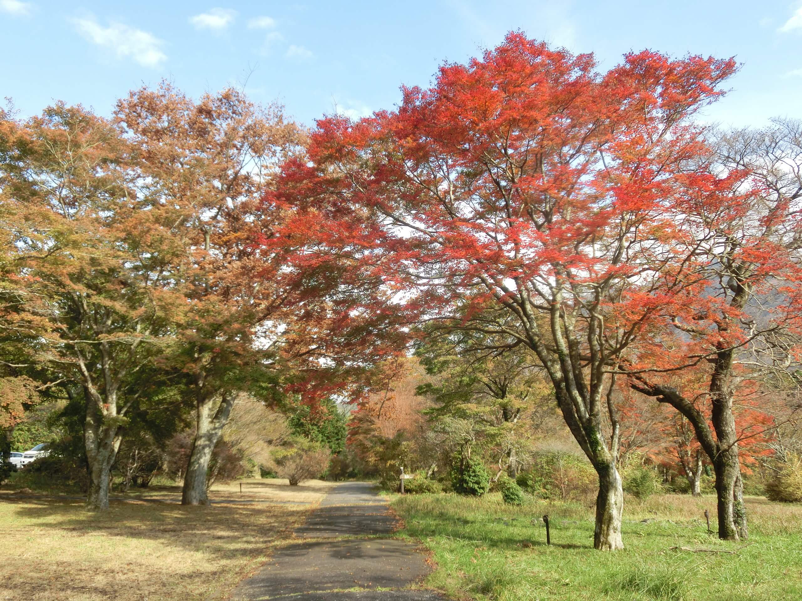 湖尻桃源台の周辺には、白百合台園地や花の広場、野鳥の森など自然と触れ合える緑地が広がります。ほかにも「子供の広場」、「50周年記念広場」、「湖畔ふれあい園地」などがあり、これらを総称して『湖尻園地』と呼びます。園地内で紅葉を楽しめるおすすめのウォーキングコースは、芦ノ湖添いに伸びる遊歩道です。芦ノ湖と紅葉のコラボレーションが美しい景色を堪能しましょう。また、芦ノ湖を背にして「箱根ビジターセンター」の方面へ敷地内を進むと、静かで落ち着いた雰囲気の散策路へ。足元に広がる鮮やかな落葉を拾いながら散歩するのも風流です。