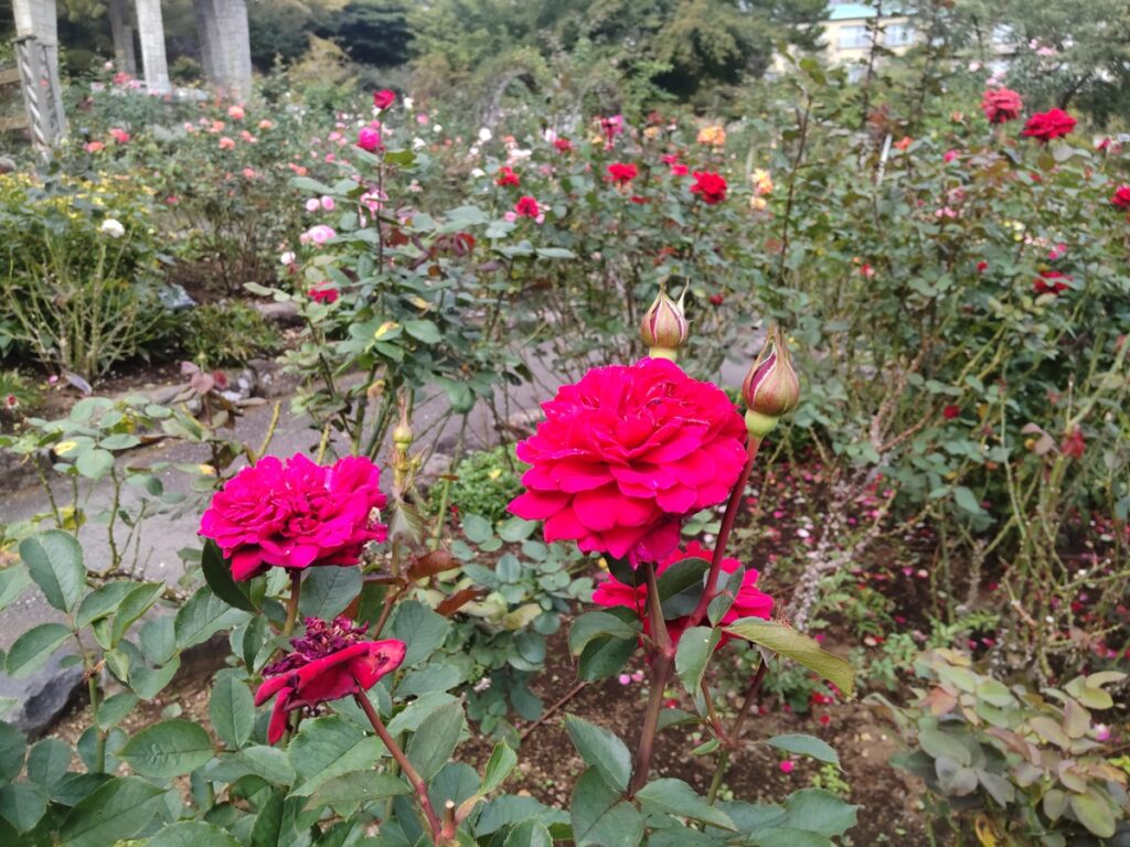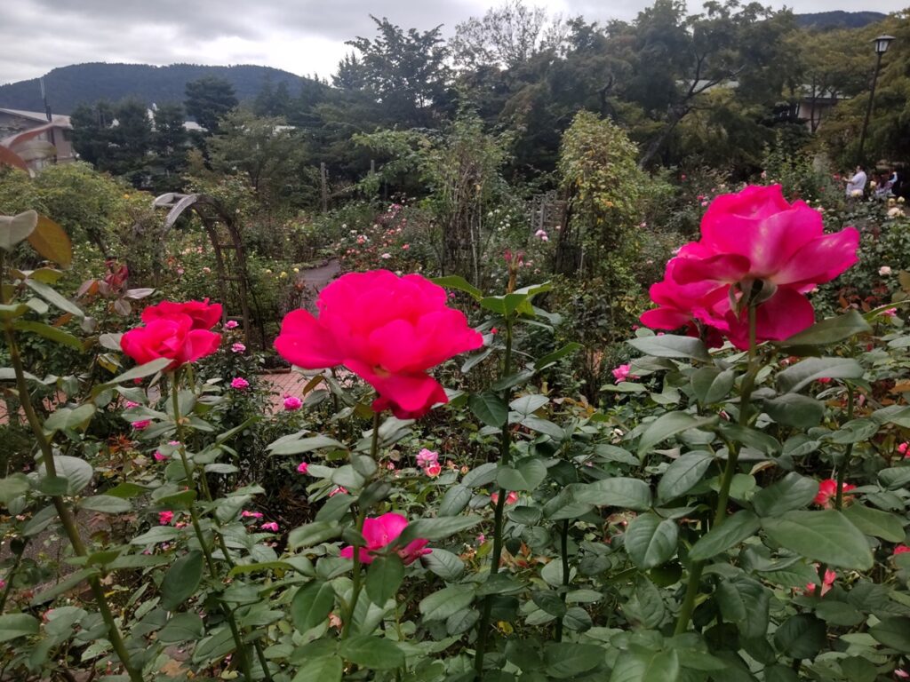 強羅公園の中でも人気の高いローズガーデンですが、今年も秋バラが少しずつ咲きそろい、今見頃を迎えています。