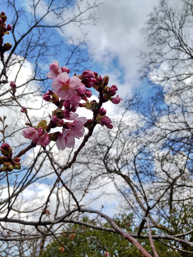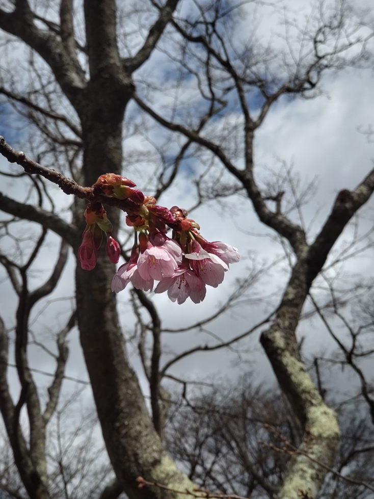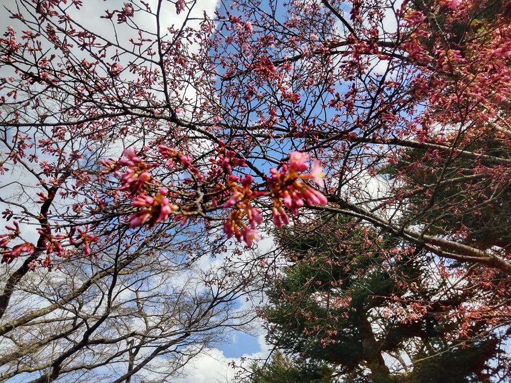 さて、強羅公園のカワヅザクラは標高が高く気温が低いため、平野部と比べ開花はかなり遅いのですが、最近ようやく開花し始めました。