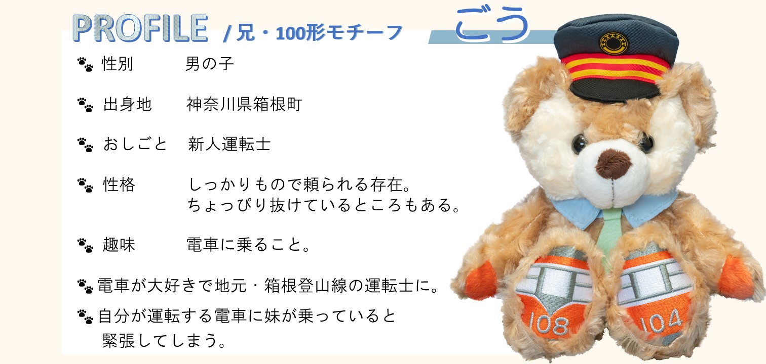 発売中の100形をモチーフとしたもう一つの「登山電車ベア」のおなまえは「ごうくん」です。