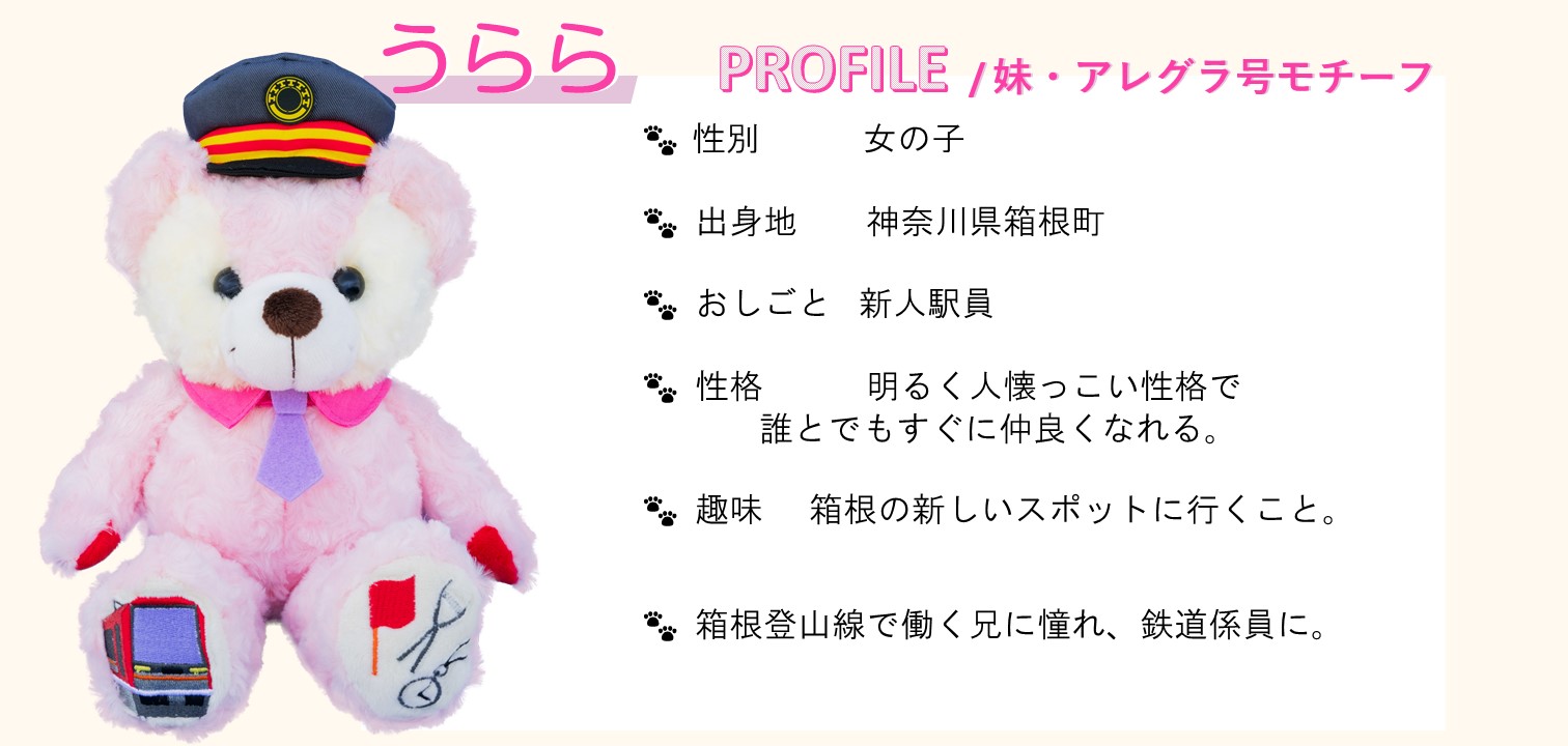 【箱根登山電車】アレグラ号モチーフの「登山電車ベア うららちゃん」 を発売します!