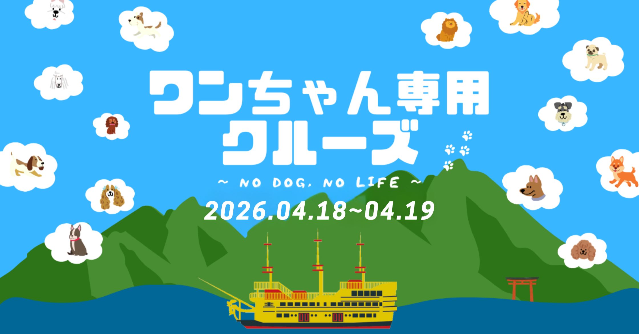 箱根海賊船では、2026年4月18日(土)と19日(日)の両日で「ワンちゃん専用クルーズ」を特別運航します!