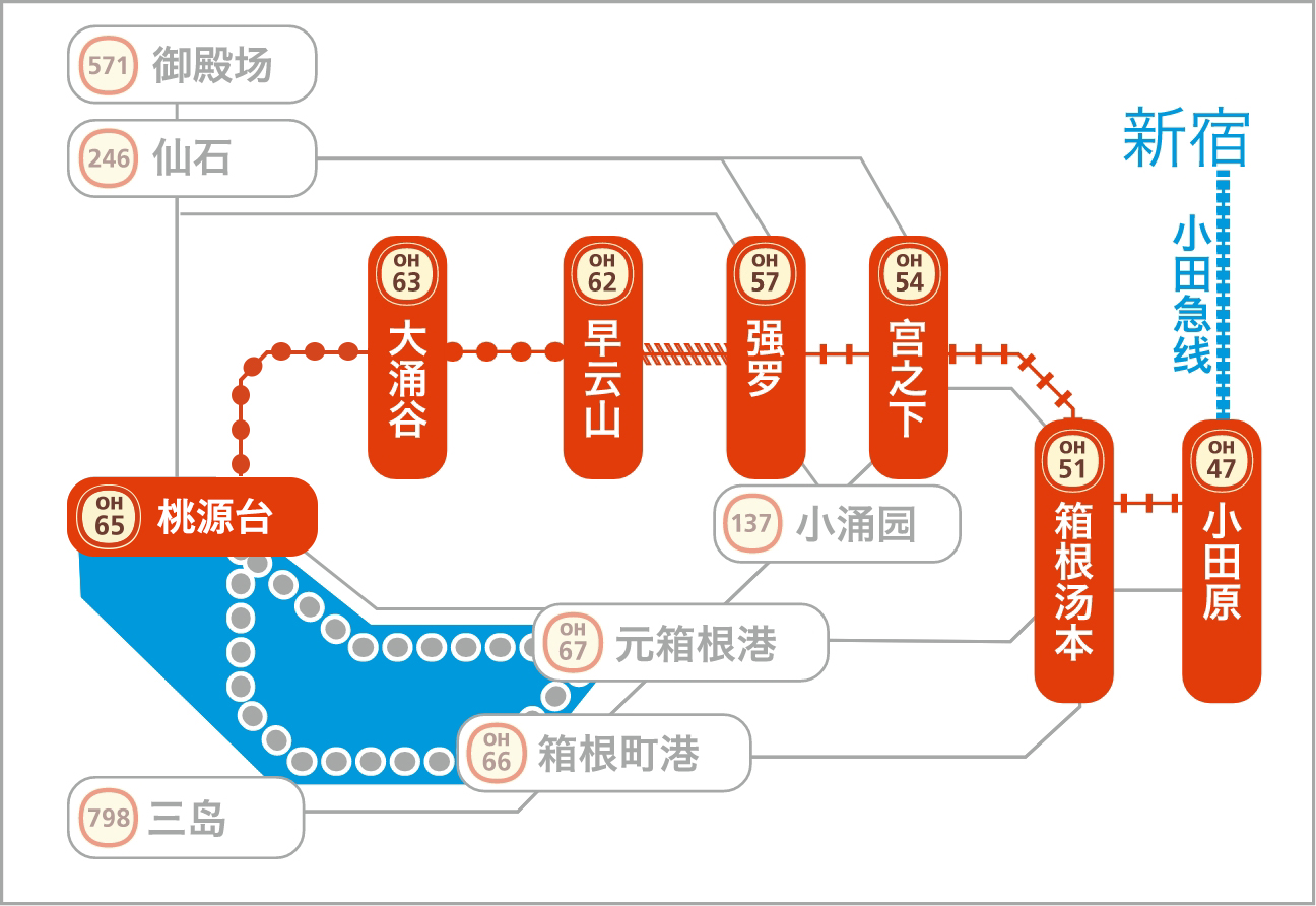 ※从小田急线乘车时,小田急线区间(出发车站~小田原车站)乘车仅限往返1次。(可中途下车。希望下车时请告知工作人员)