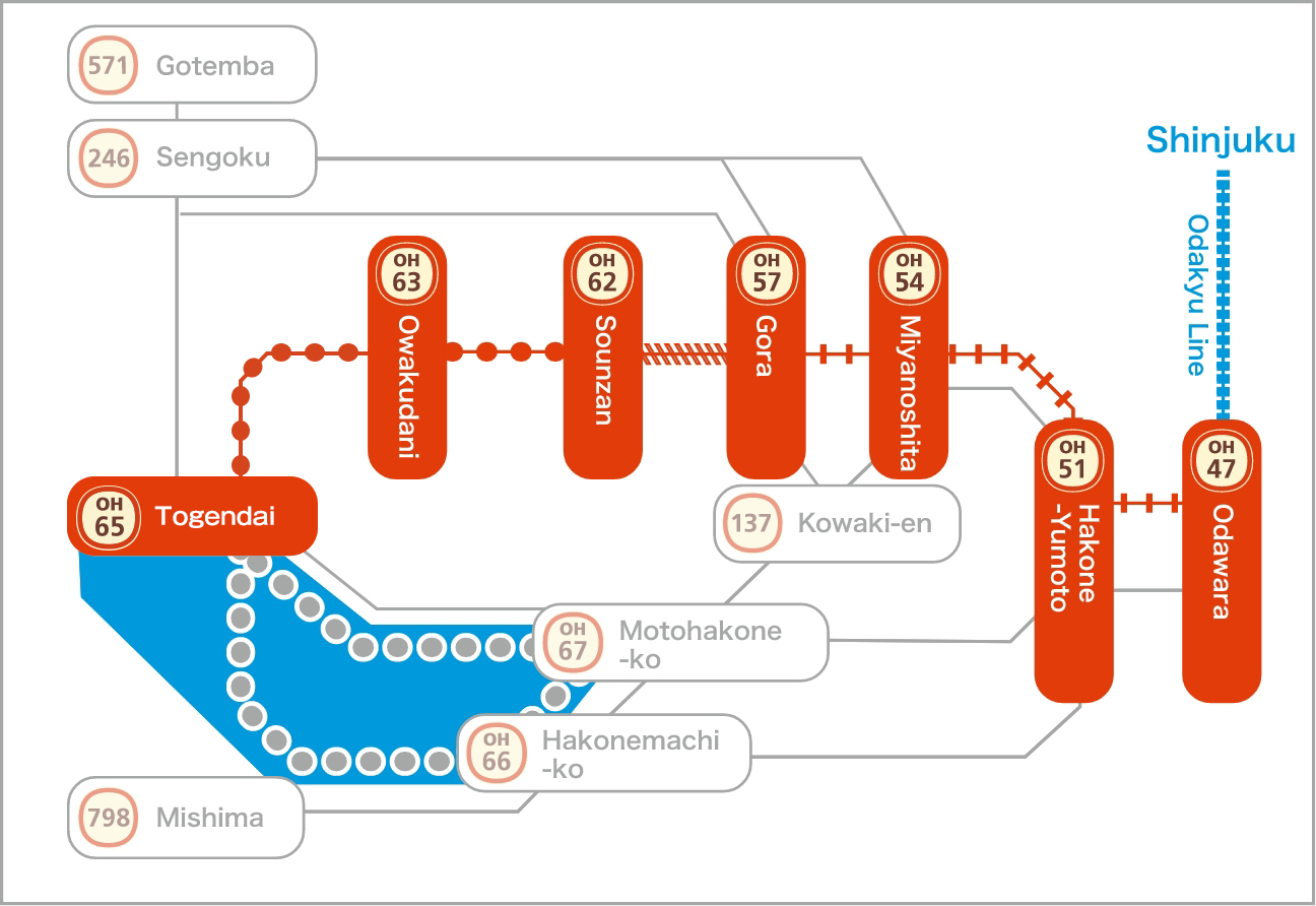 ※ An extra fee is required for the Limited Express “Romancecar” between Odawara Station ~ Hakone-Yumoto Station.