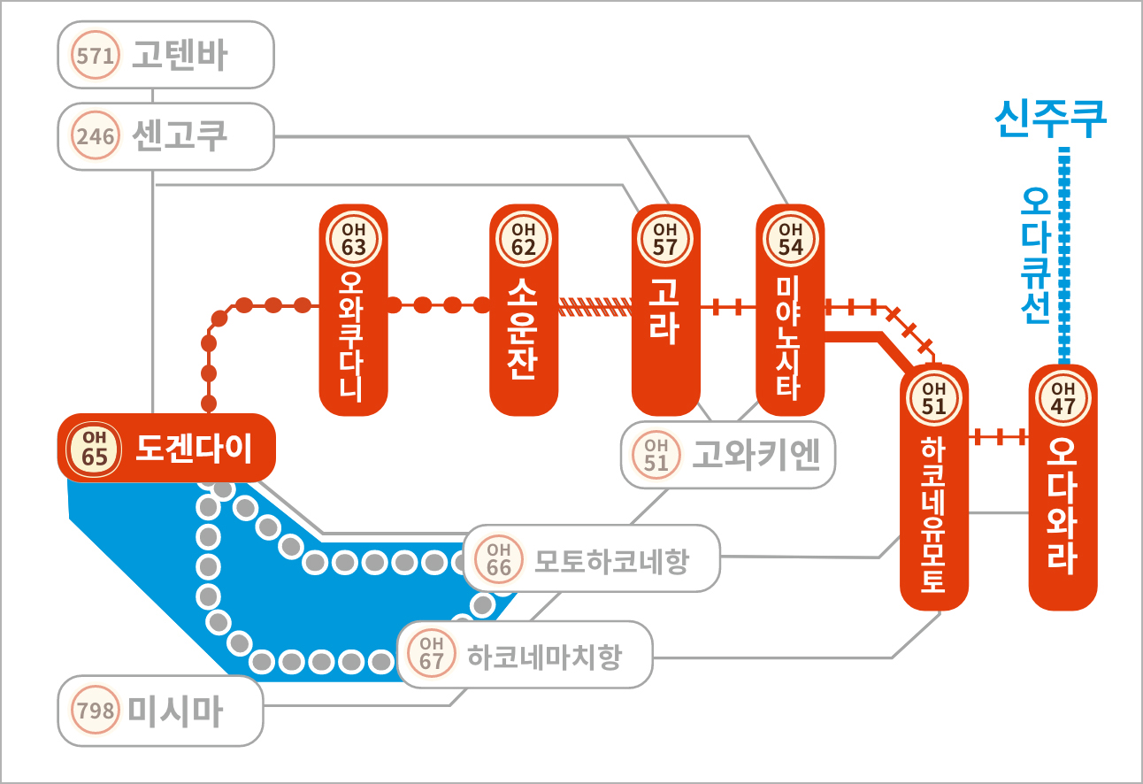 ※오와쿠다니역~도겐다이역 구간 이용 시 별도 요금이 필요합니다.