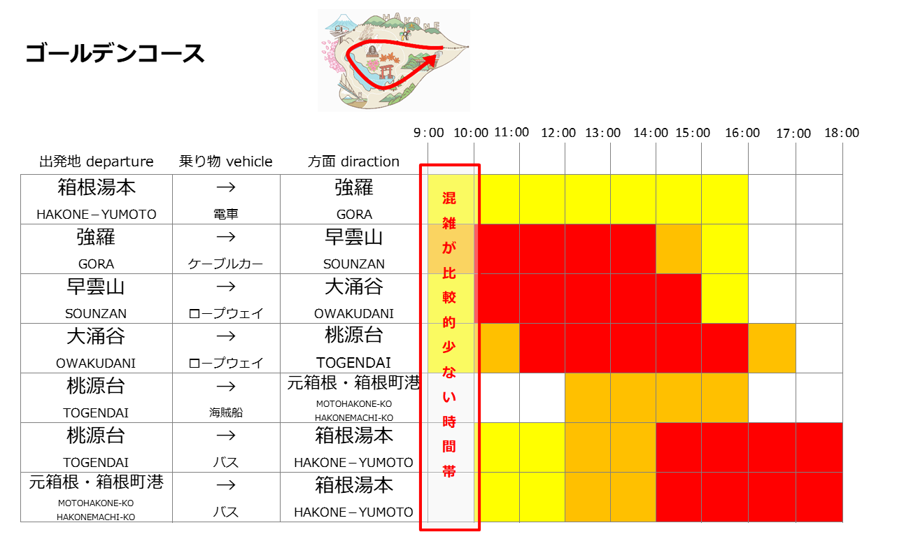 箱根エリアでは、秋の行楽シーズン中、各乗り物の混雑、